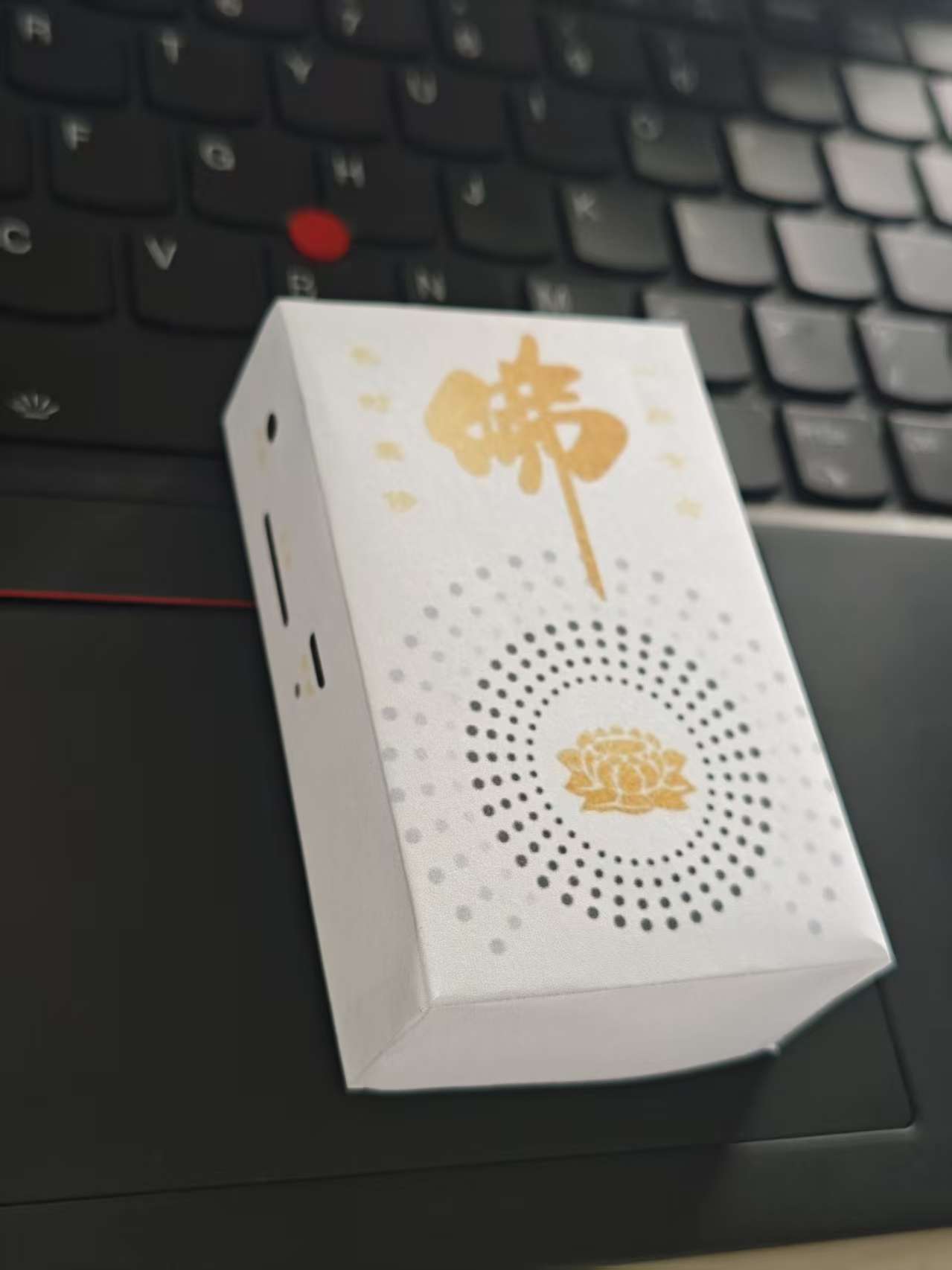 1.点击上方蓝色字,将文件下载并打印出来,用剪刀将念佛机剪下来,用胶水粘好。